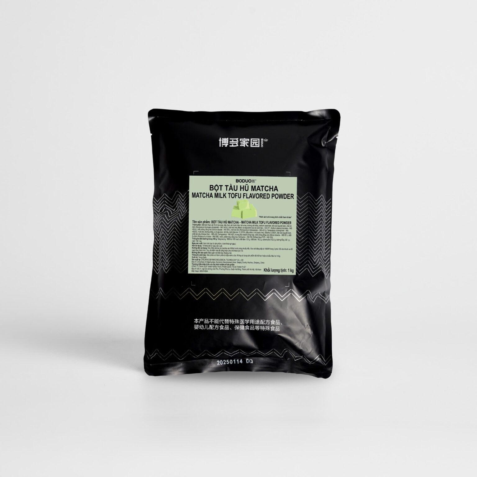- Tên sản phẩm: BỘT TÀU HŨ MATCHA – MATCHA MILK TOFU FLAVORED POWDER