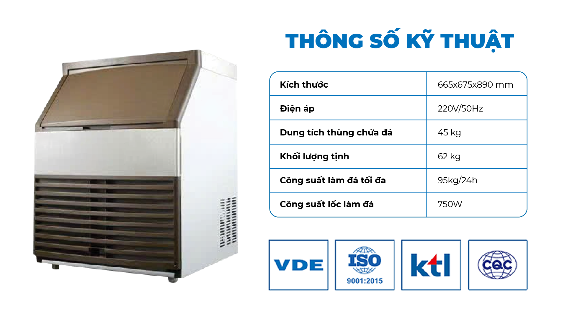 MÁY LÀM ĐÁ YUBANN YB-TH210 Máy làm đá công nghiệp dành cho quán quy mô vừa và nhỏ, công suất 95kg đá phù hợp với mô hình quán bán 200-300 ly mỗi ngày. quán lúc nào cũng sẵn đã với giá chi phí siêu thấp, công suất 750W – siêu thấp.
